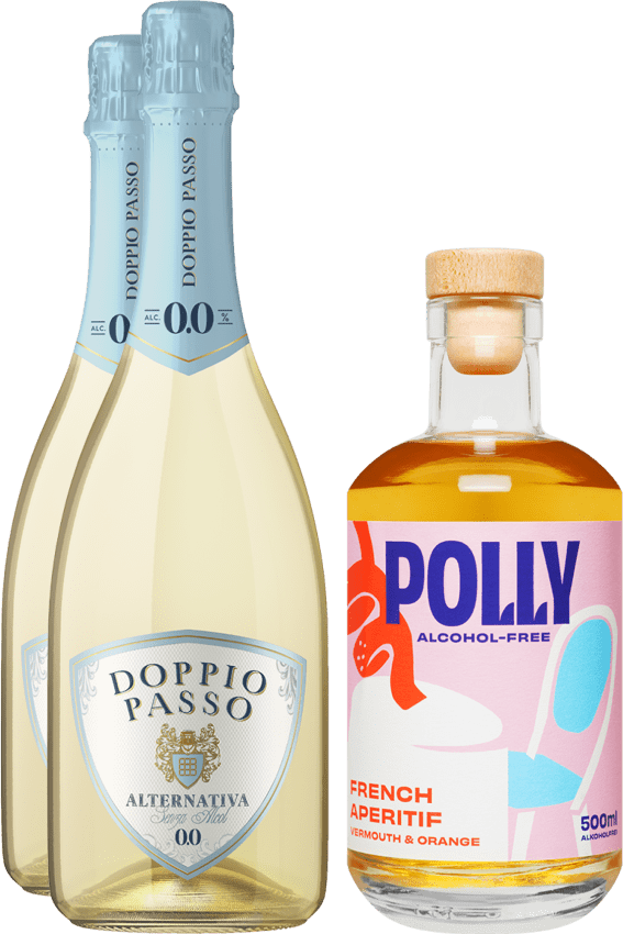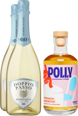 Der Doppio Passo Alternativa Sparkling bringt prickelnde Frische mit Noten von grünem Apfel und Zitrusfrüchten, während der POLLY»French« Aperitif (gleich doppelt dabei!) mit seiner fruchtig-bitteren Mischung aus Orange und Kräutern den perfekten Kontrastliefert.